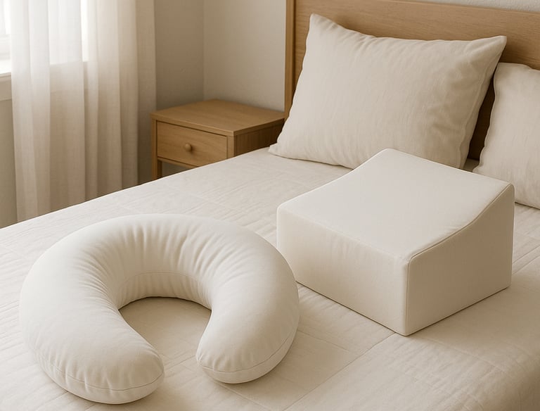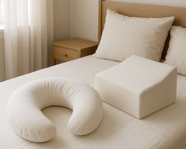 Les incontournables sont ceux qui améliorent immédiatement ton confort : coussin d’allaitement, coussin de surélévation, poche de glace, genouillère légère, tapis antidérapant, élastiques…